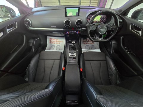 Click on video tag to view full HD video walk around. HPi clear & certified for your piece of mind, MOT until 27th March 2027 (no advisories) & a fresh service that will compliment its service history (7 Audi Stamps & 3 other) & is supplied with a free 30 day national warranty with breakdown cover. Here we have a really exceptional eye-catching one owner example of the immensely popular Audi A3 Sportback, Finished in stunning Nano grey metallic paint, Coupled with the fantastic 188 BHP 2.0 TFSi engine all running through a six speed manual gearbox, makes this the whole drivers package. This rare manual S-Line āBlack Editionā model trim includes remote central locking, Leather/Sport weave bi-fabric S-Line embossed sports seats with heated front seats, Day light running lights with front fog lights, Rear wash wipe, Original 18 inch multi-spoke Alloy Wheels with 4 Michelin tyres, Auto lights, Heated electric power folding door mirrors, One touch front & rear electric windows with anti-trap, DAB Radio with blue tooth connectivity for calls & music streaming, Bang & Olufsen speaker system with boot mounted sub-Woofer, Plus a 6.5 inch foldable Sat-Nav media colour display, Full LCD speedo with multi view, Multi-function flat bottom leather steering wheel with audio controls, Media voice control, Dual zone digital air conditioning, Service indicator, Height adjustable front seats, Multiple airbags, ABS, PAS, Traction control, Steering wheel reach & rake adjustment. We are a family run used vehicle sales company, with hand picked stock, Finance is easily arranged, All of our Vehicles come with warranty. All major debit & credit cards accepted for deposit payments (Except American Express). Registration numbers are obscured for vehicle security. Please Note: Whilst every effort has been made to ensure the accuracy of this used vehicle information and images, some errors may occur. It is important that you do not rely solely on this information or images, but check with the manufacturer, any items that may affect your decision to purchase this vehicle.Technical Data