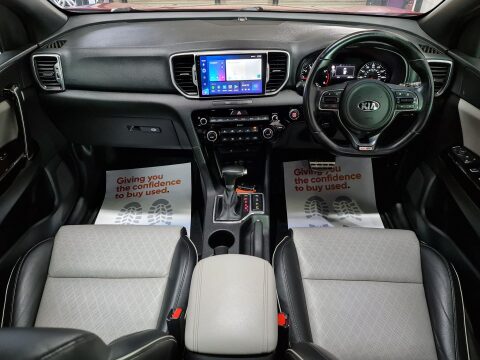 Click on video tag to view full HD video walk around. HPi clear & certified for your piece of mind, MOT until 4th August 2026 which compliments its service history x10 services (5 Main dealer + 5 other). This is a spectacular example of the very highly acclaimed KIA Sportage, with the very desirable 174 bhp 1.6i engine, twinned with a 7 speed auto gearbox & 4 wheel drive, makes this the whole package. This GT-Line model has an outstanding trim level that includes roof rails, Headlight mounted LED DRL’s, Headlights - High Beam Assist – HBA, Front fog lights, Full stone & black two tone leather interior, Heated front & rear seats, Multi-function leather steering wheel, Original KIA 19 inch diamond cut alloy wheels, All round tinted windows with limo tint past the B-Pillar, Heated electric power folding door mirrors, Auto lights & rain sensing wipers, Reversing camera with front & rear acoustic parking radar, Front & rear electric anti-trap windows with drivers one touch, Multi media interface colour touch screen sound system including Bluetooth-Sat Nav, Cruise control, Digital automatic climatic air conditioning, Driver information computer, Service indicator, Front/side & curtain airbags, Isofix child seat anchor points, ABS, Electronic Diff lock, Power assisted steering, ESP traction control, Front & rear arm rest, Fold flat rear seats, Plus a lot things we have not the space to mention. We are a family run used vehicle sales company, with hand picked stock, Finance is easily arranged, All of our Vehicles come with warranty. All major debit & credit cards accepted. Registration numbers are obscured for vehicle security. Please Note: Whilst every effort has been made to ensure the accuracy of this used vehicle information and images, some errors may occur. It is important that you do not rely solely on this information or images, but check with the manufacturer, any items that may affect your decision to purchase this vehicle.Technical Data